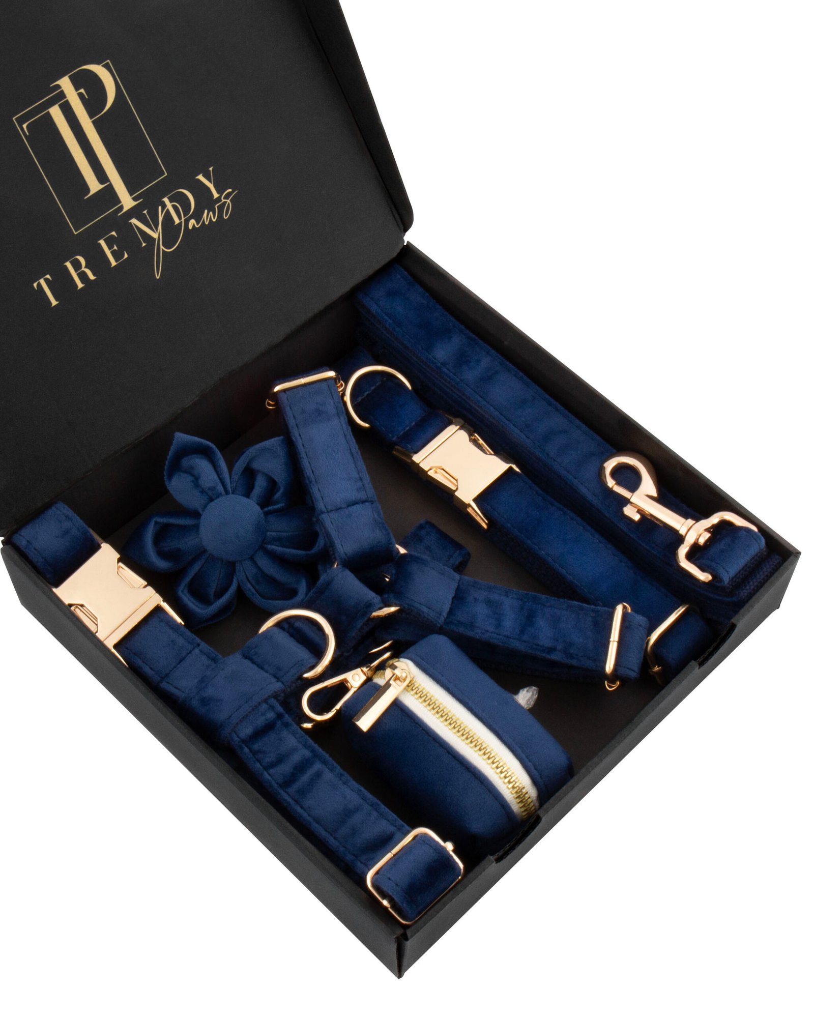 Pagamintas iš minkšto aksomo ir nailono, šis komplektas ne tik atrodo puikiai, bet taip pat yra patogus ir komfotriškas. Tvirtos nerūdijančio plieno detalės suteikia šiam aksomo komplektui prabangos ir išskirtinumo akcento. Šuns peteliškė-gėlė su lipniomis juostelėmis leidžia jums pritaikyti ją pagal pageidaujamą stilių ir lengvai tvirtinti prie kitų aksesuarų. Dėklas maišeliams ar skanėstams ne tik puikiai derinasi su pavadėliu, bet ir yra praktiškas pasirinkimas, leidžiantis išlaikyti tvarką savo pasivaikščiojimų metu. Galite naudoti šį dėklą ne tik kaip stilingą aksesuarą, bet ir kaip patogų būdą laikyti reikalingus daiktus jūsų augintinio kelionėse. Leiskite savo šuniui pasižymėti ne tik savo unikalia asmenybe, bet ir išskirtiniu stiliumi. Šis mėlyno aksomo komplektas yra ne tik puiki dovana jūsų augintiniui, bet ir būdas parodyti, kad stilius ir elegancija yra svarbios ne tik žmonėms, bet ir jų mylimiems keturkojams draugams.